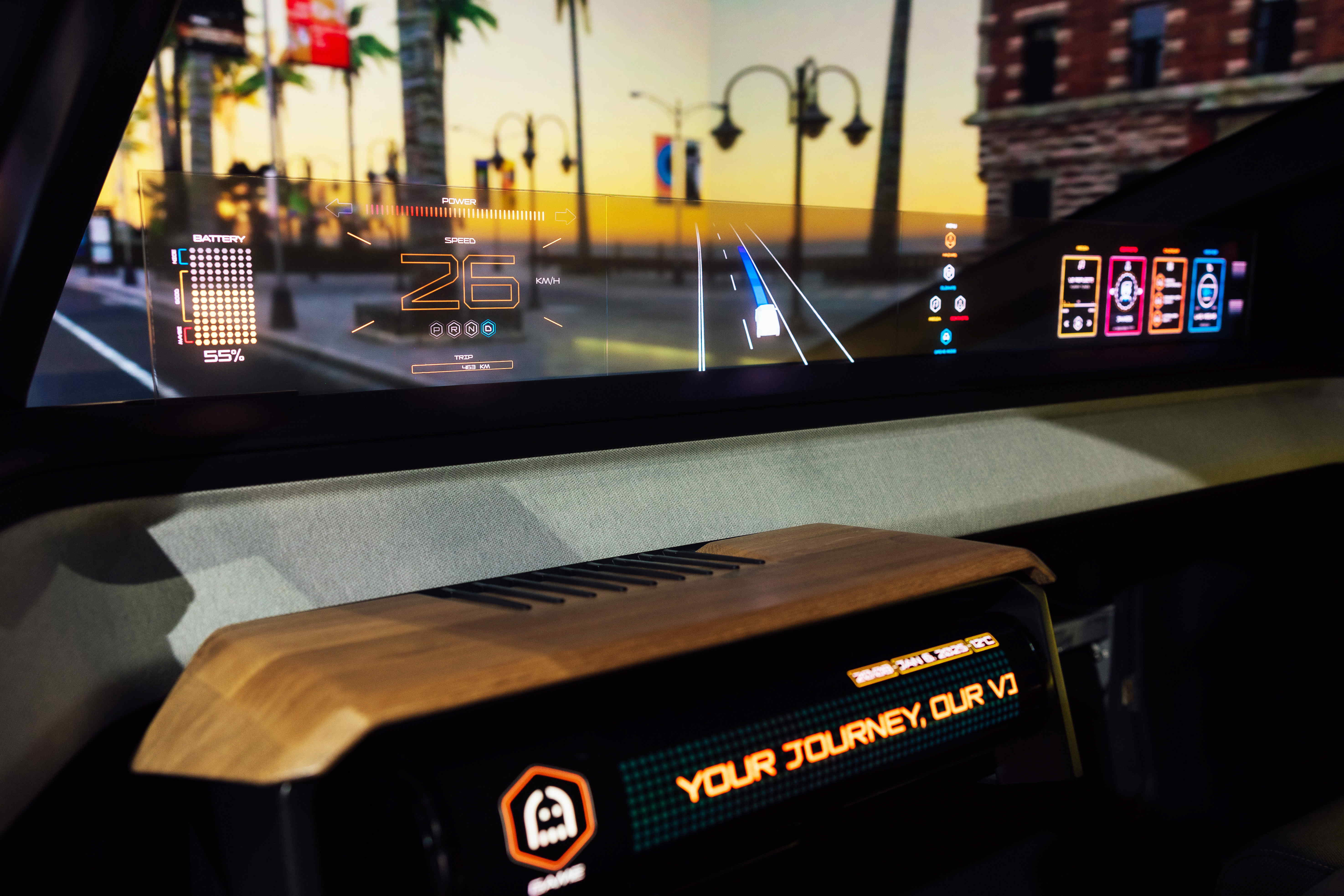 透過XR 互動智慧窗(XR Interactive Window)展現強大的運算能力,搭配AI人工智慧自動生成運算,未來當車輛行經途中,只需在車窗上圈選對應之車外標的,即可在螢幕中與其互動、獲取相關資訊,讓乘客享有身歷其境、互動式且逼真的體驗。