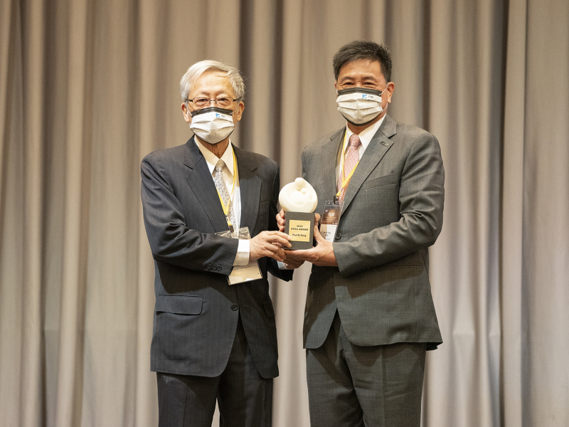 友達(dá)董事長暨執(zhí)行長彭雙浪 (右) 獲頒潘文淵文教基金會 ERSO Award,以其推動高附加價值顯示技術(shù),帶動產(chǎn)業(yè)升級轉(zhuǎn)型,獲得高度肯定 (圖左頒獎人:潘文淵文教基金會董事長史欽泰)